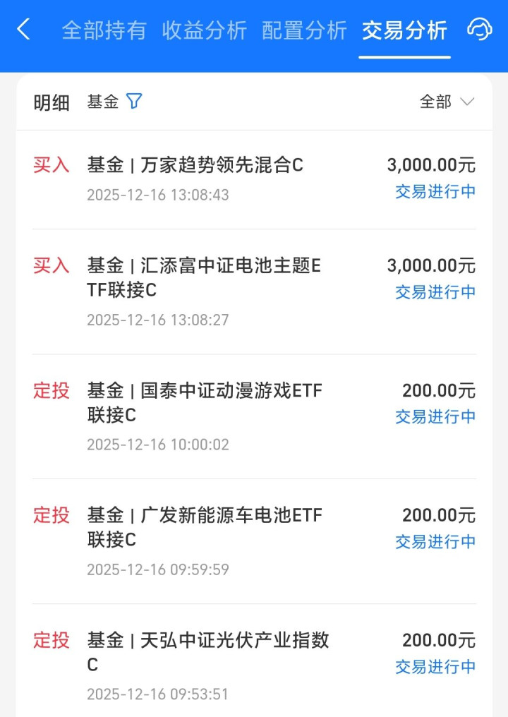 2.买入3000元$汇添富中证电池主题ETF联接C$